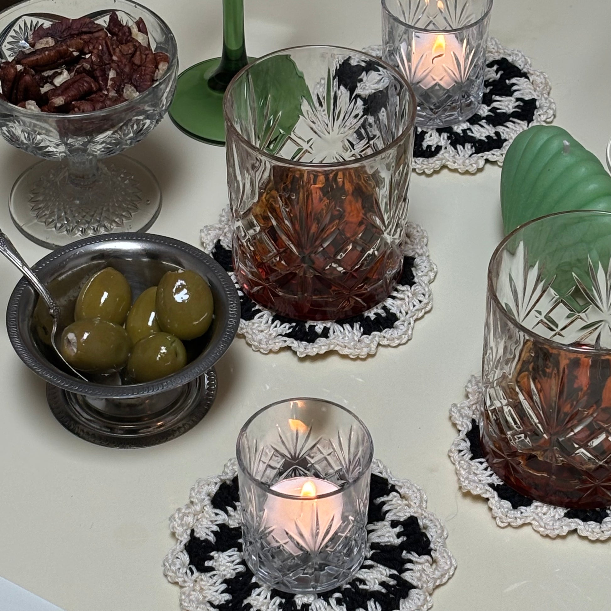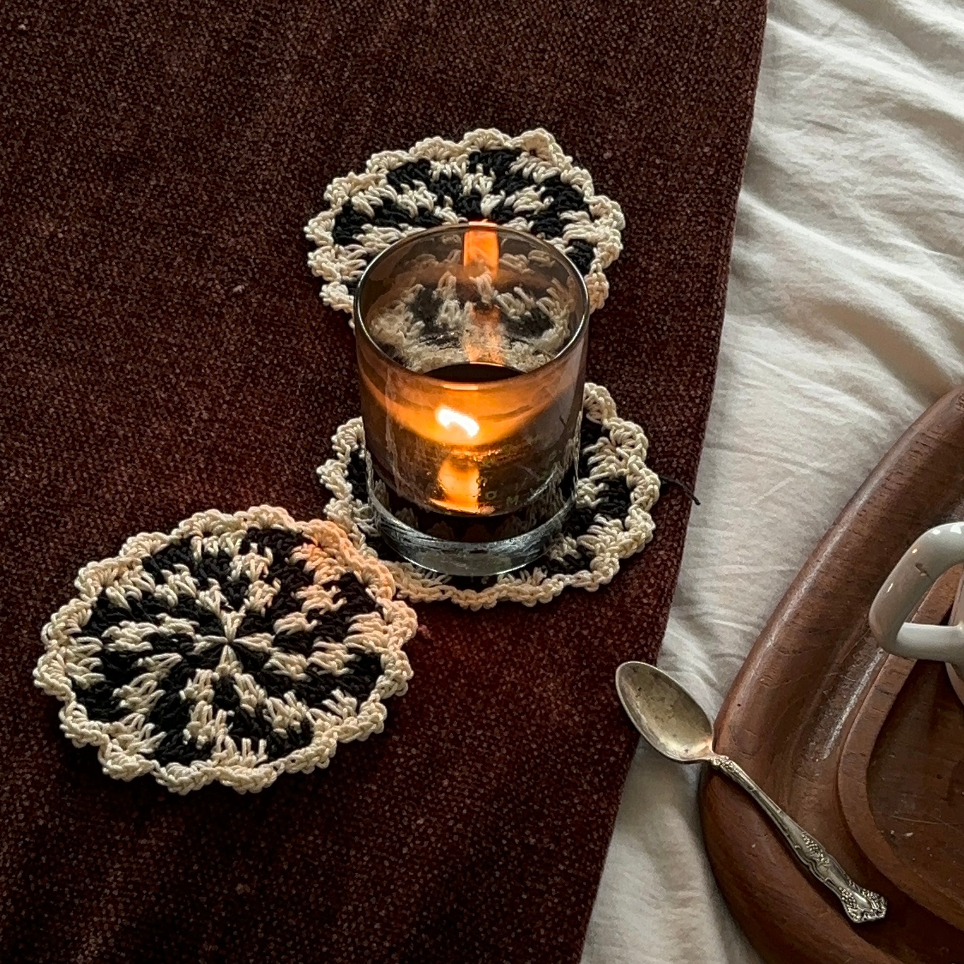 Liven up your dinner party or coffee table set up with the handmade Swirl Coaster Set! Made from 100% mercerized cotton and crocheted with love in Brooklyn, NY.